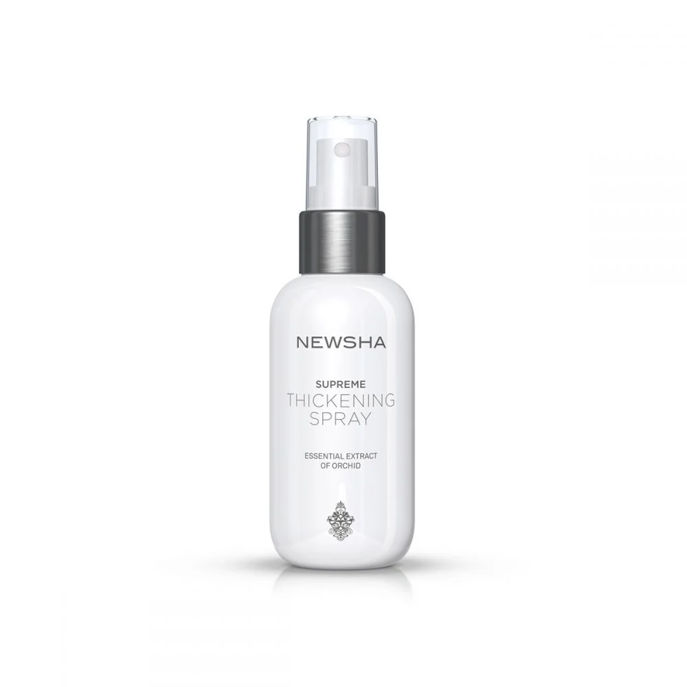 NEWSHA HIGH CLASS Supreme Thickening Spray jamstvo je kose pune volumena. Izuzetni ekstrakti tropske orhideje imaju posebno hranjiv i obnavljajući učinak. Tanka i krhka kosa dobiva na snazi, elastičnosti i gustoći. Tekstura spreja olakšava ravnomjernu raspodjelu proizvoda i na taj način osigurava svestrani ujednačen volumen s prirodnim osjećajem kose – idealan za davanje ekstravagantnog volumena stilovima koje je potrebno istaknuti.